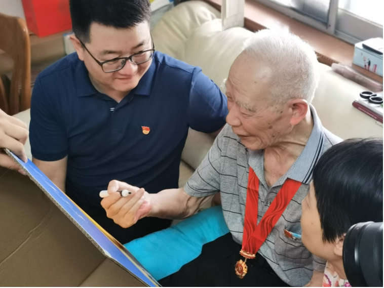 一同前往的还有互邦快递中西部负责人王忠证,互邦快递安徽省区负责人吴磊、两名互邦快递入党积极分子,为老党员送上了米、面、油、互邦T恤等生活物资,并认真聆听老党员们的工作经历和入党历程,学习老党员的精神。